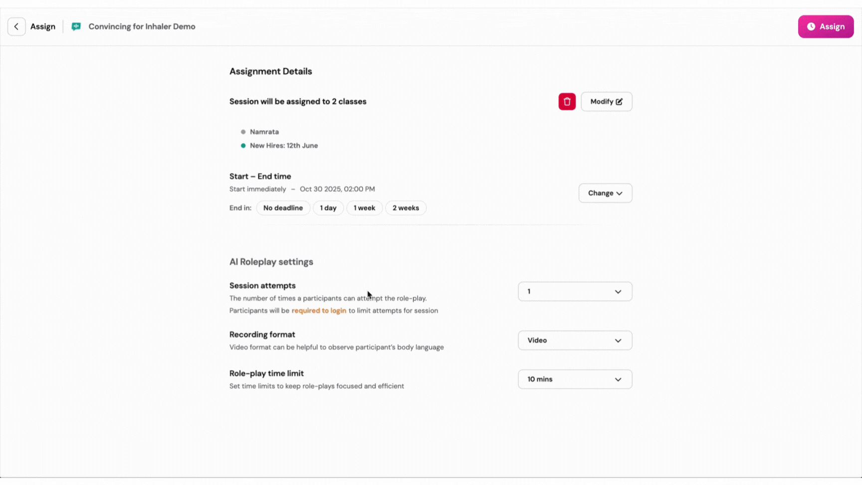 Follow the steps below to learn how to assign a Roleplay activity as a session: